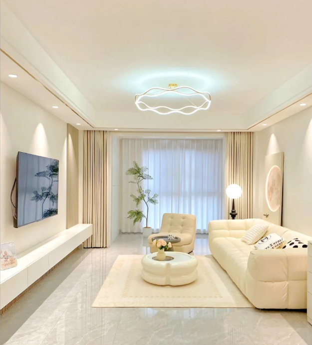 全屋的设计,旨在让空间与空间、空间与人相互交互,极大地延伸空间的视线与纵深感。从吊顶到地台,再到家具的选择,皆采用圆弧线设计,形态上呈现出饱满、稳定的视觉效果。材质之间相互碰撞,配饰起到点睛作用,艺术、生活和美学在此交融,于纯粹之中融入温柔与放松的慵懒感,营造出优雅、浪漫且温婉的空间氛围。